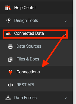 The Connections area of the platform is where you can add connections for connectors. Navigate the side menu to Connected Data > Connections.