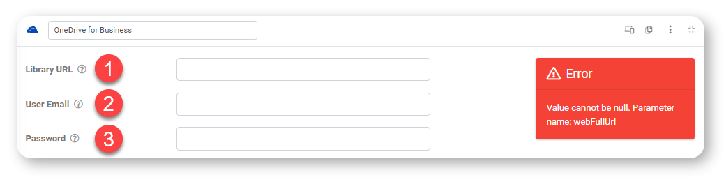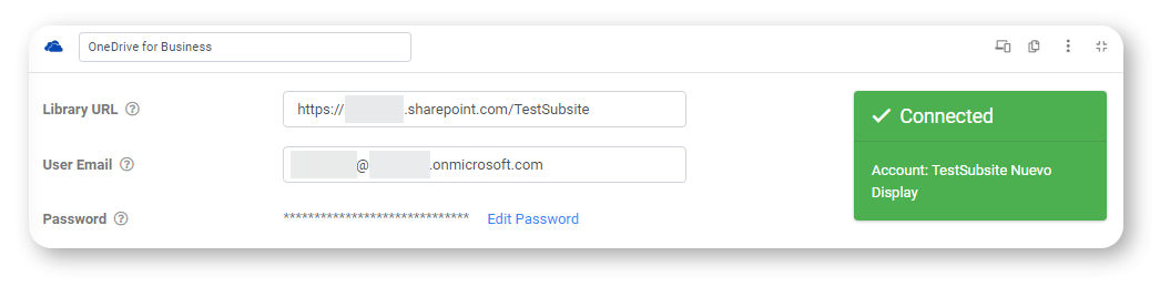 | Microsoft 365 Account | ✓ | ✓ (Requires the root location of your OneDrive storage, Library URL) |
