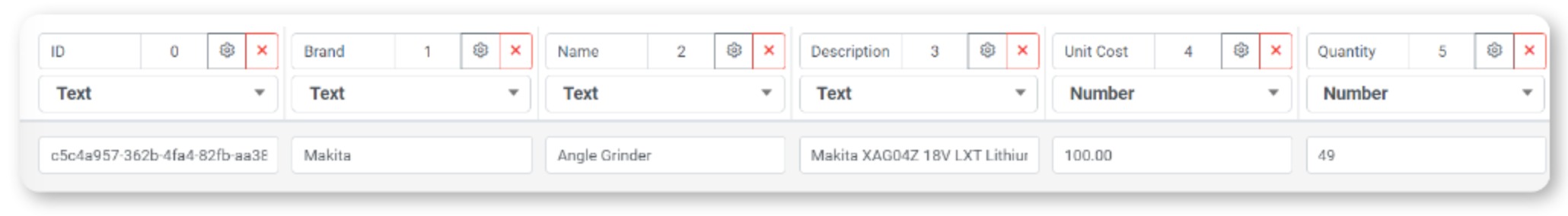 Requires at least two columns and 1 row. The 1st column's row (Column 0) must have a value to save successfully.