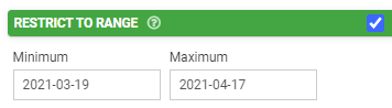 Checking this box enforces validation of the date/time value against the values in the two fields below the checkbox, enforcing that answers lie within a specified range.