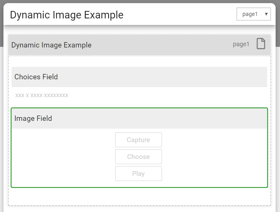 The "Dynamic Image" property allows you to load images dynamically into Media, Sketch and Section fields, usually through a data source column or a formula result. The dynamic image property allows you to, with the use of formulae, dynamically change the image displayed in a Media, Sketch or Section field. The property accepts URLs to images stored on the web as well as references to data source cells that contain image URLs.