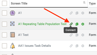 To get to the Connector Page, from the Screens page click on the Connector icon.