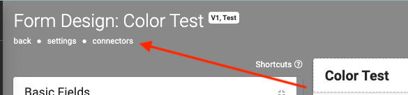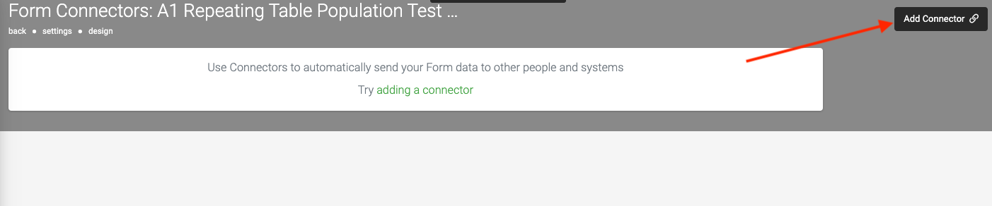You can also get to the Connectors Page while on any of your Forms by clicking on Connectors from the top right menu.