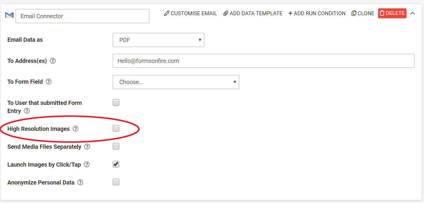This same "High Resolution Images" option is available on Form connectors: