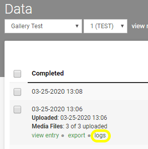 On the following page, hover the mouse over the desired submission and click “logs” below the entry details: