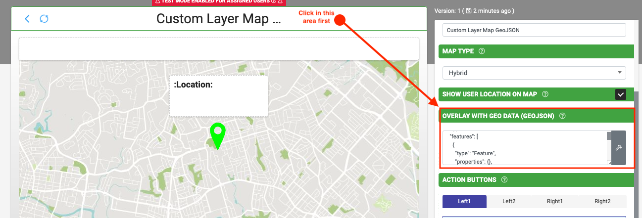 Additionally, if you would like to check that your GeoJSON data is correctly formatted, paste the contents into GeoJSONLint, this will assist in making sure your data is formatted correctly. Copy the content from the Linter and paste it into the Overlay Map with Geo Data property in the platform.