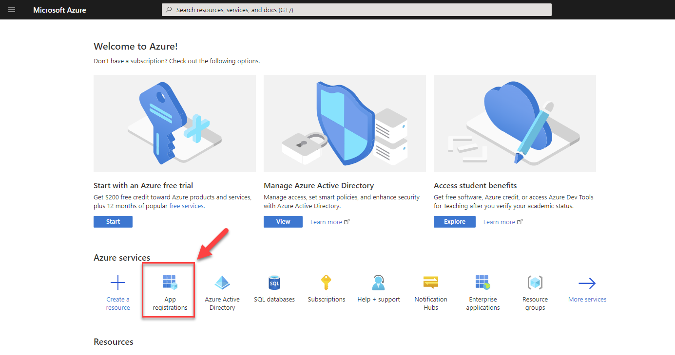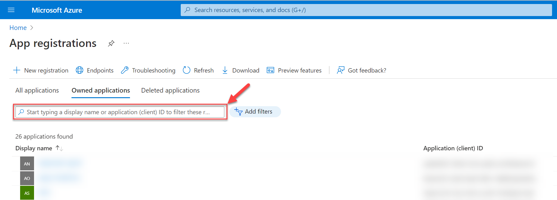 1. Log in to your Azure account and navigate to Azure Active Directory > App registrations.