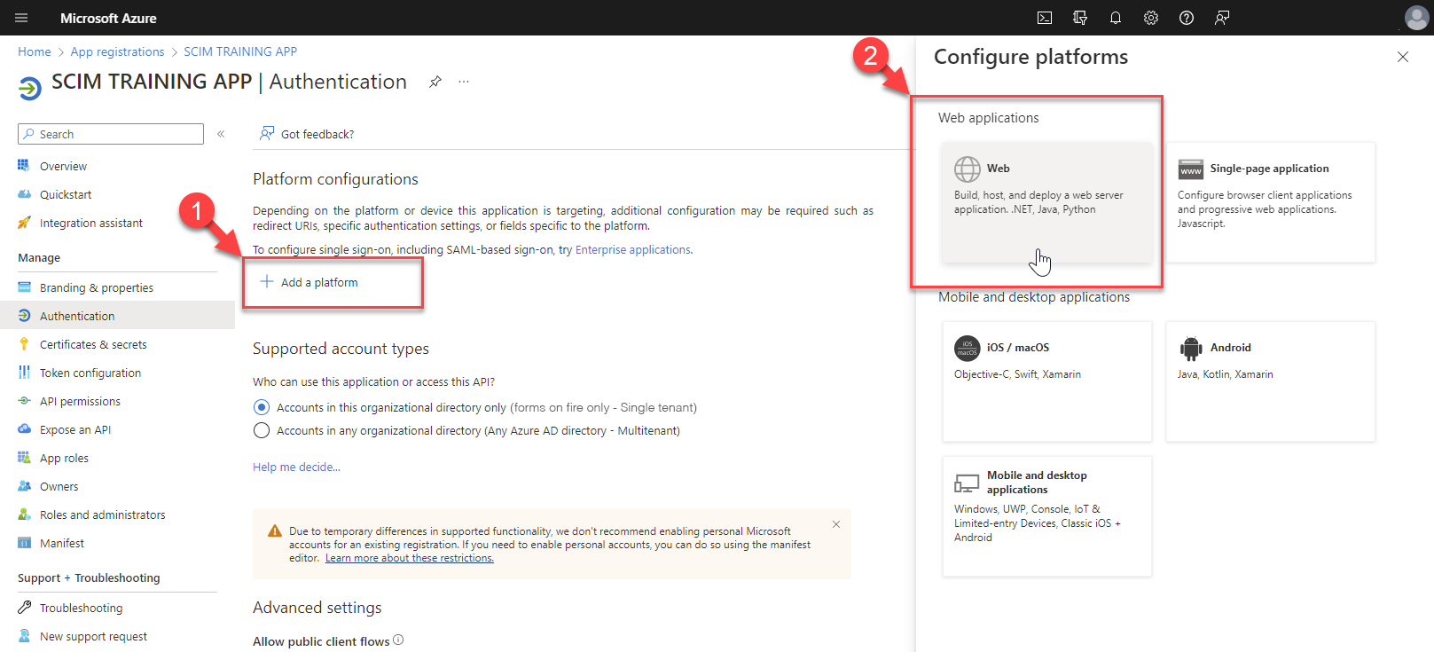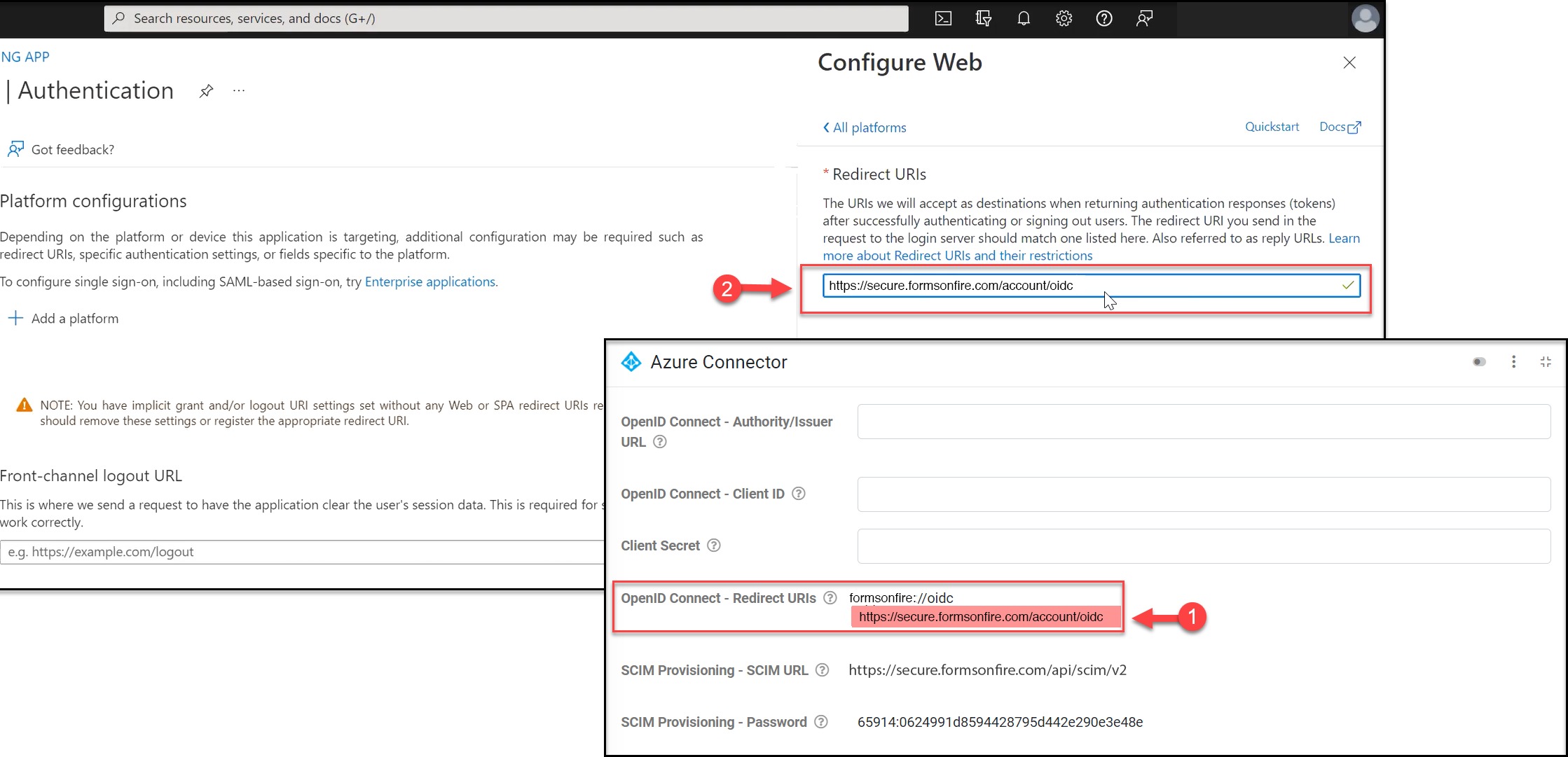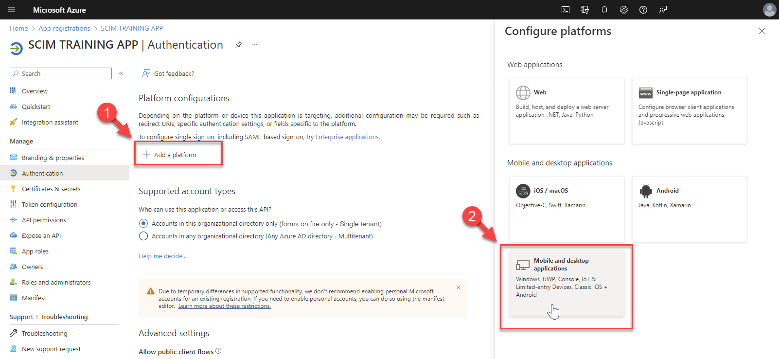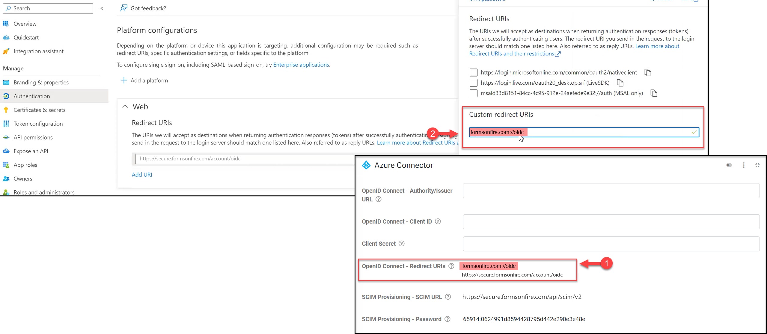 When adding a Mobile and Desktop platform and required to enter a Redirect URI. ThisURI is required from our portal and the properties of the connector, Open Connect Redirect URIs (Organization Setup > Integrations > Azure Connector).