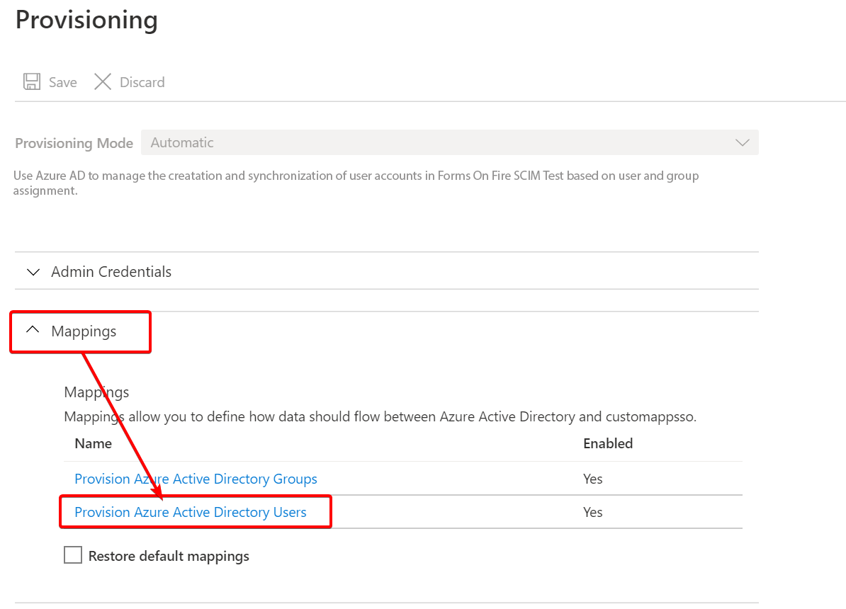 Give the page some time to load, and then select Mappings > Provision Azure Active Directory Users