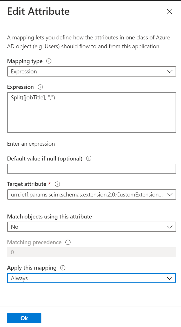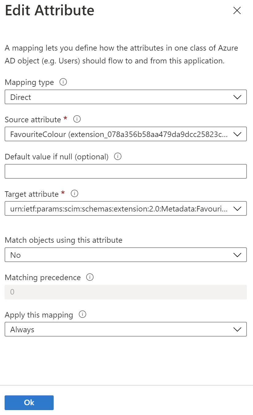 - Source attribute: The attribute in Azure AD you are mapping from (We are using extension attributes in the screenshots, but you could use any attribute supported by Azure AD).