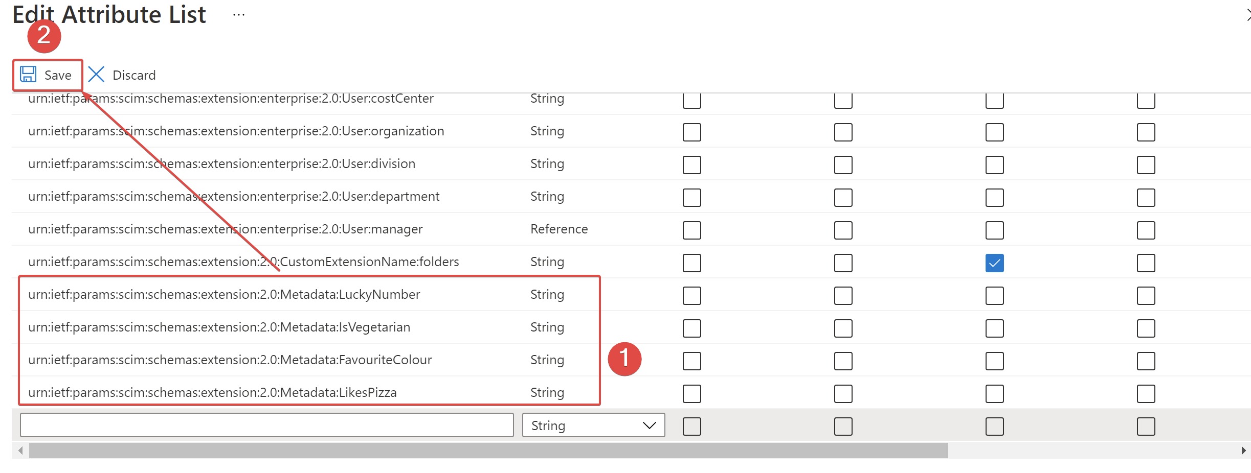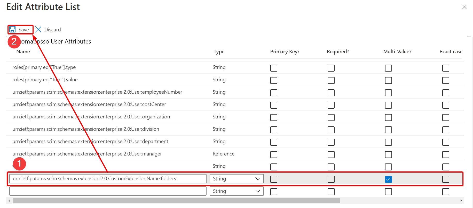 - Target attribute: urn:ietf:params:scim:schemas:extension:2.0:CustomExtensionName:folders
