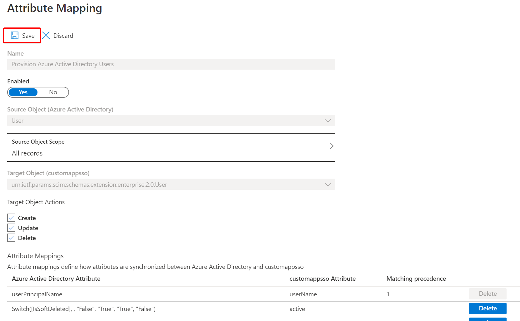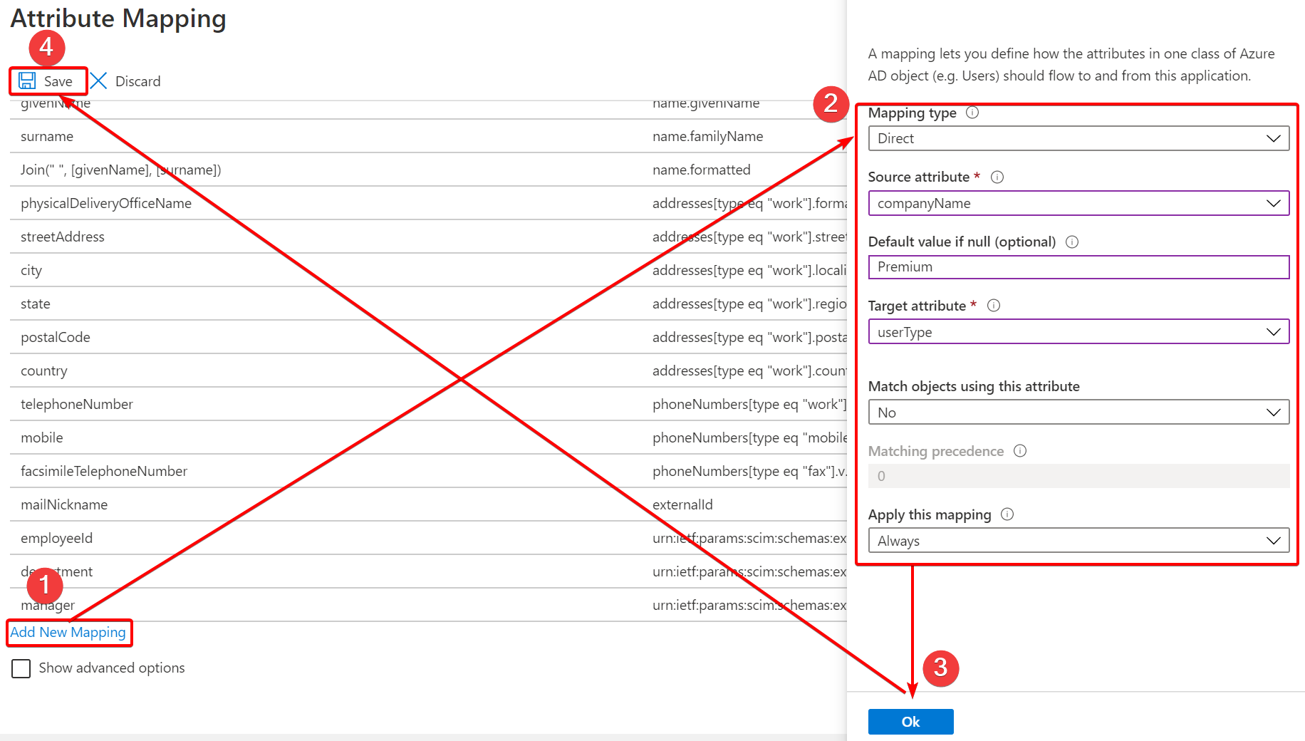 - Source attribute: The attribute on your user from where this property must come from. We just used the Company Name as an example. You could use any property you have configured in your Azure Active Directory.