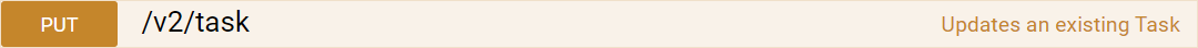 The PUT verb allows you to update any existing task in your account. The required and optional parameters for a PUT call to the Task API are outlined below.