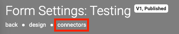 The Form Connectors page can be accessed from your Form designer page, Form settings page or the Screens listing if you mouse over the Form row in question.