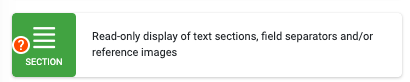 The section field is a read-only field type that lets you display text and/or an image in the Form. The field can also be used as a separator between other fields.