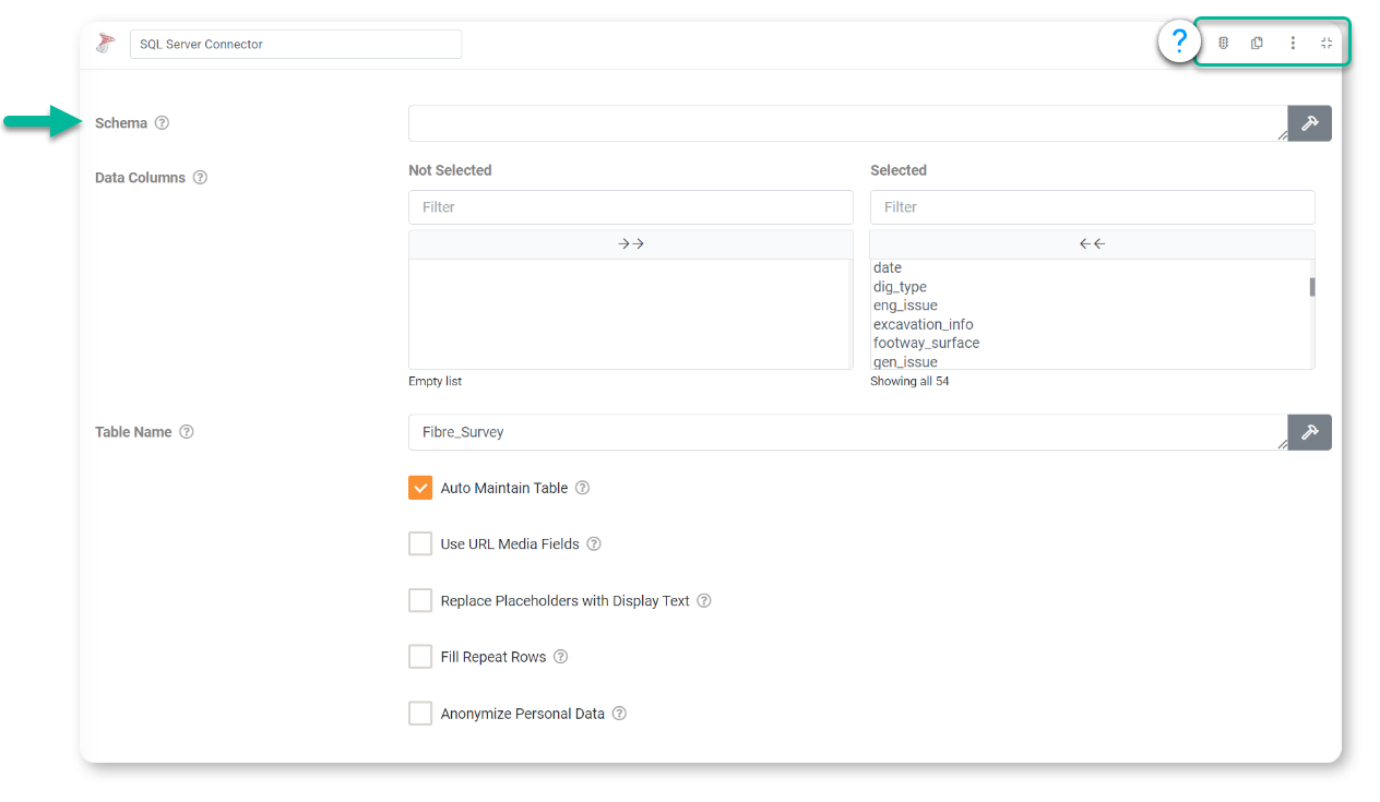After adding and authenticating a SQL Server Connection, you can add Data Source Connectors to pull data from a database or push data on form submissions using Form Connectors.