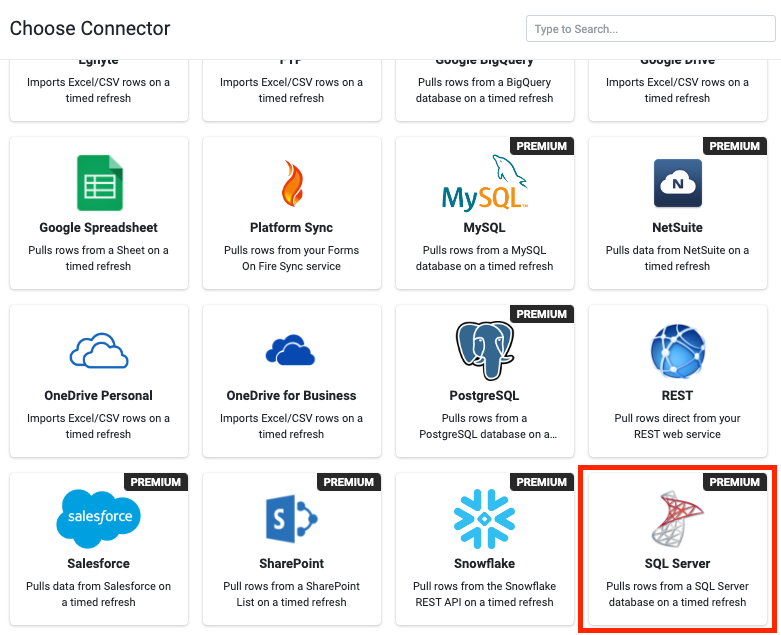 After adding and authenticating an SQL Server Connection, you can add Form Connectors to push data to a database or pull data from a database using Data Source Connectors.