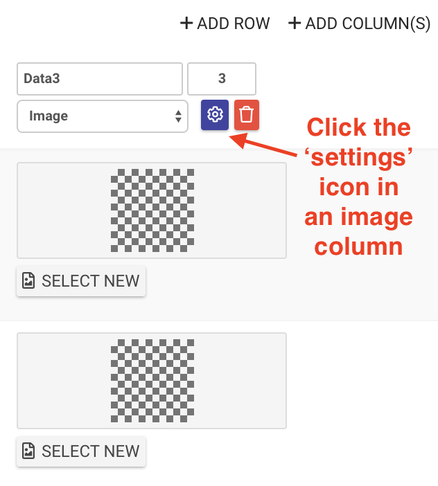 - Click the Cog icon in the header row of the image column
