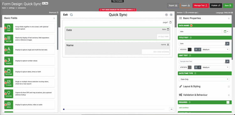 Testing design changes has never been easier when all you need to do is tap on the Quick Sync icon to pull in any changes recently made to the form.