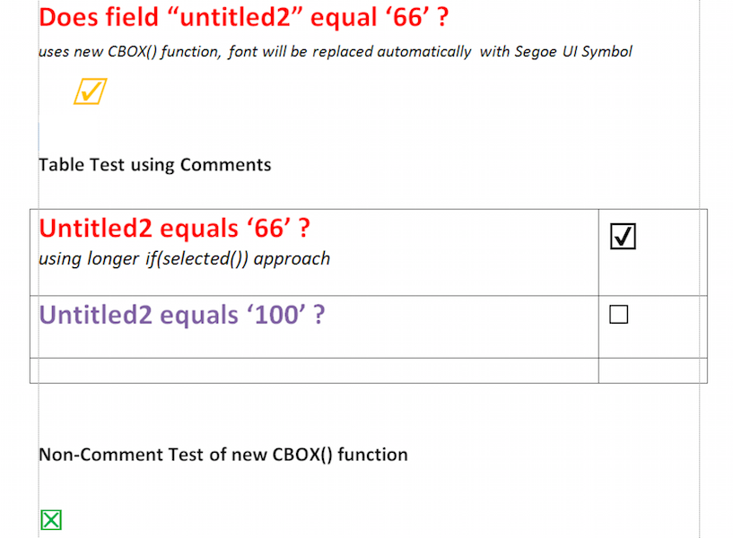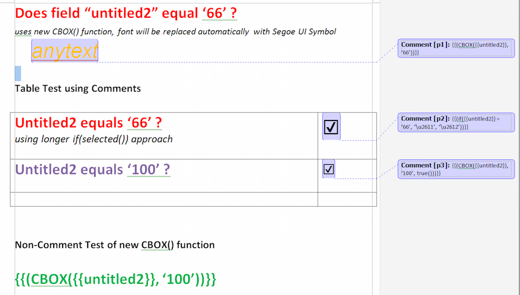 Below is an example of a Word template that uses comments to hold formula syntax: