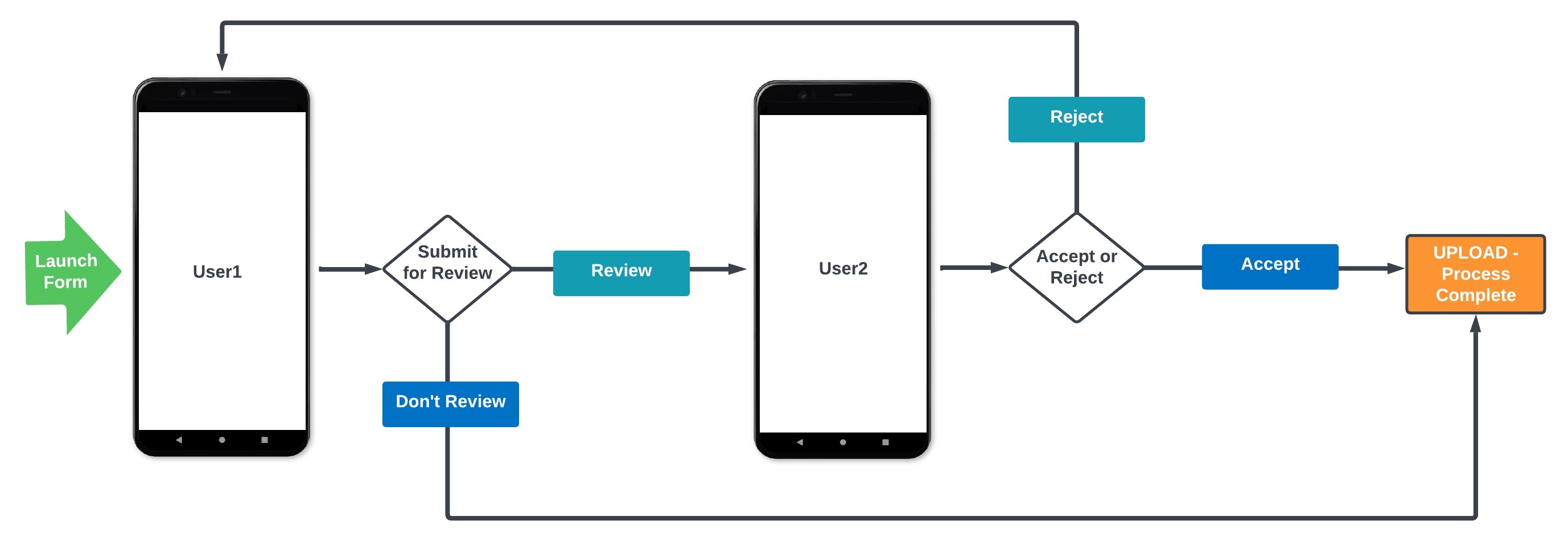 Often, a business process requires more than one person to complete it. In these scenarios, just capturing a Form entry is not enough: multiple users must review, approve, reject, or update it.
